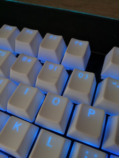 104 (+4) darabos, PBT műanyagból double shot technológiával készült gyönyörű szép fehér színű billentyű szett.