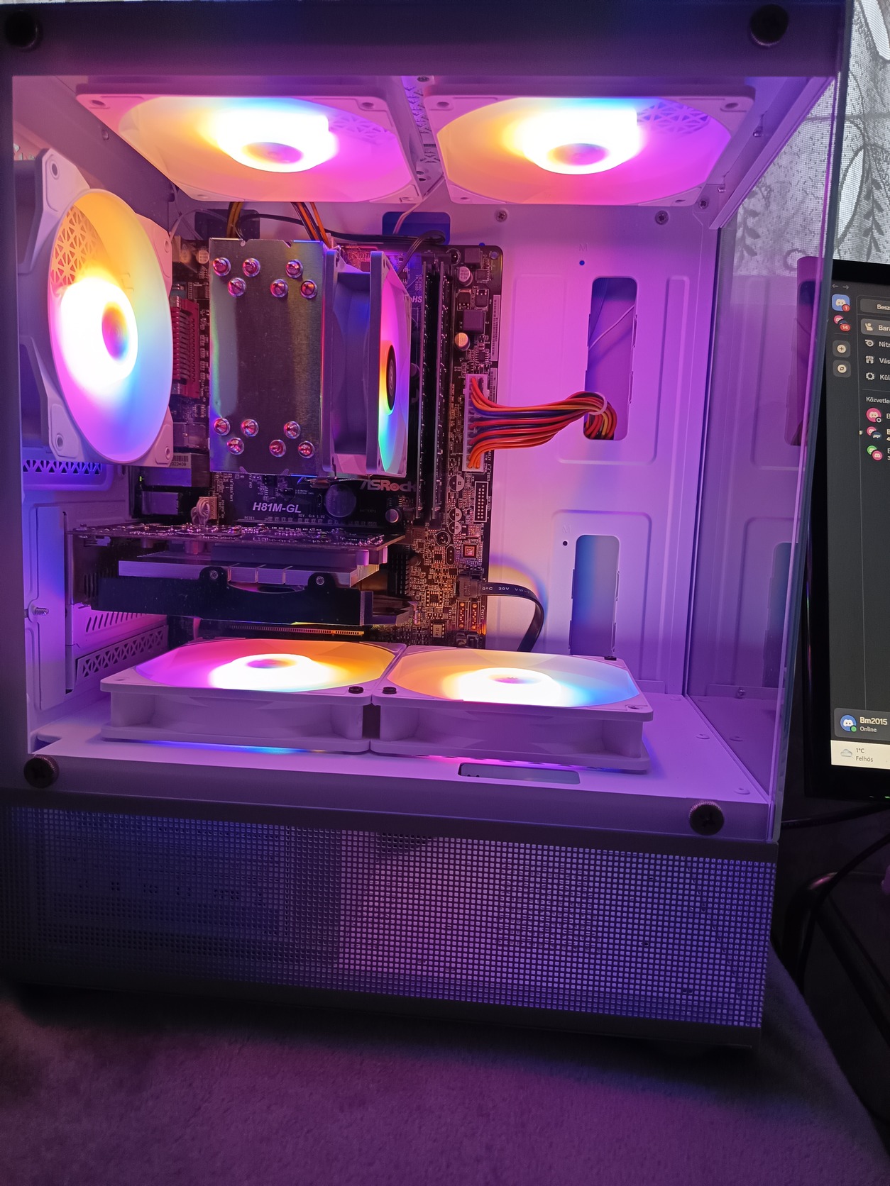 ASRock h81m-gl, 4570 processzor, 128gb SSD 3 év garanciával , sata 2.5 500gb hdd,2x8 GB ddr3 1600mhz memória, biostar Rx 550 4gb, 400 watt tápegység, fehér gépház új, 5db új frgb 12cm fehér ventilátór, aigo új processzor hütö! Frissen telepítve Windows 11 Pro regisztrált! Játékok vannak rajta: csgo2, Fortnite, gta v, call of duty: Vanguard! Ár: 69990ft! Igény esetén tudok adni Philips 23.6 col full hd monitort, billentyűzet, egér, hangszórót + 20000ft!