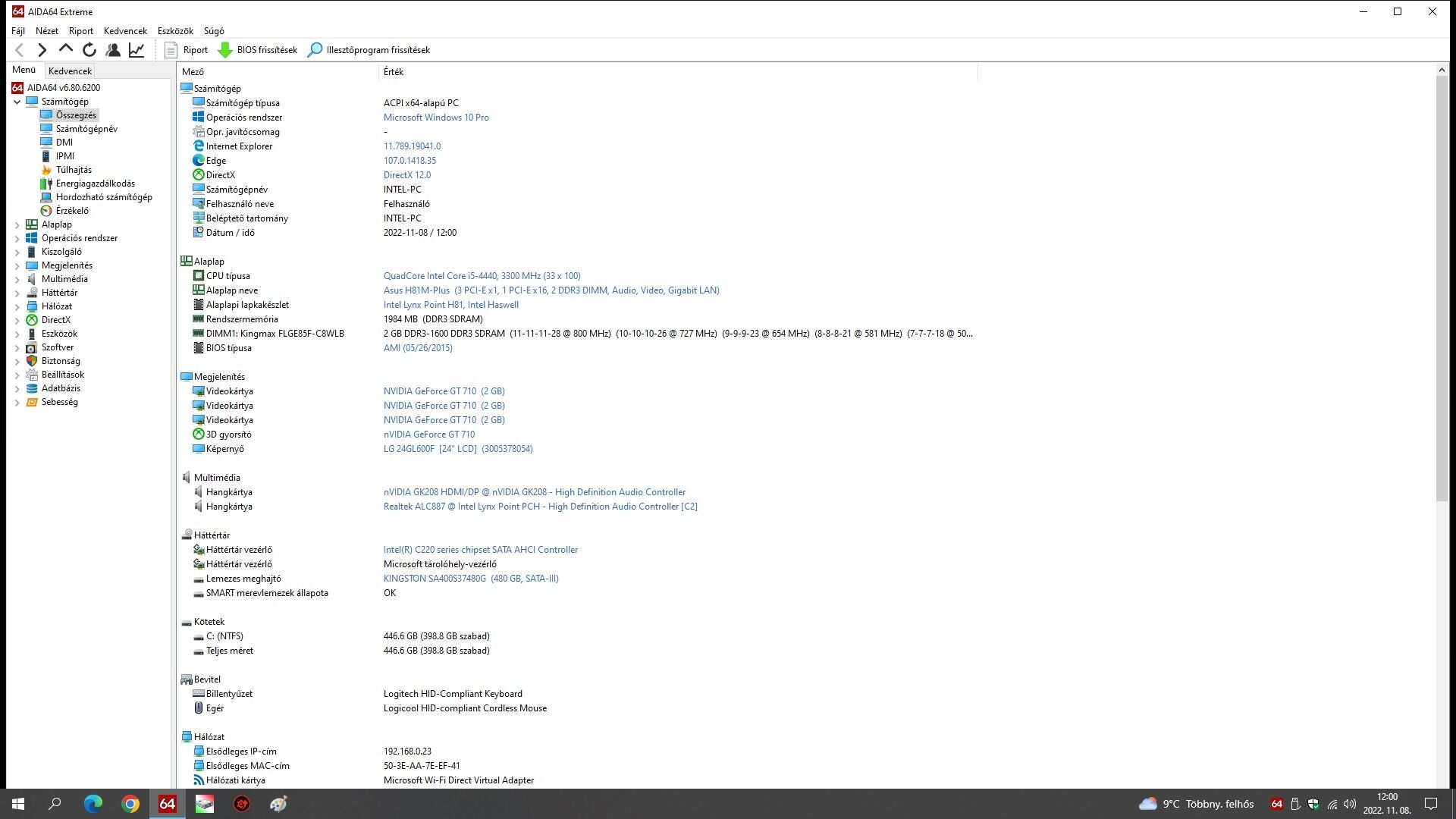 Processzor : Intel I5 4440 ( gyári hűtő )