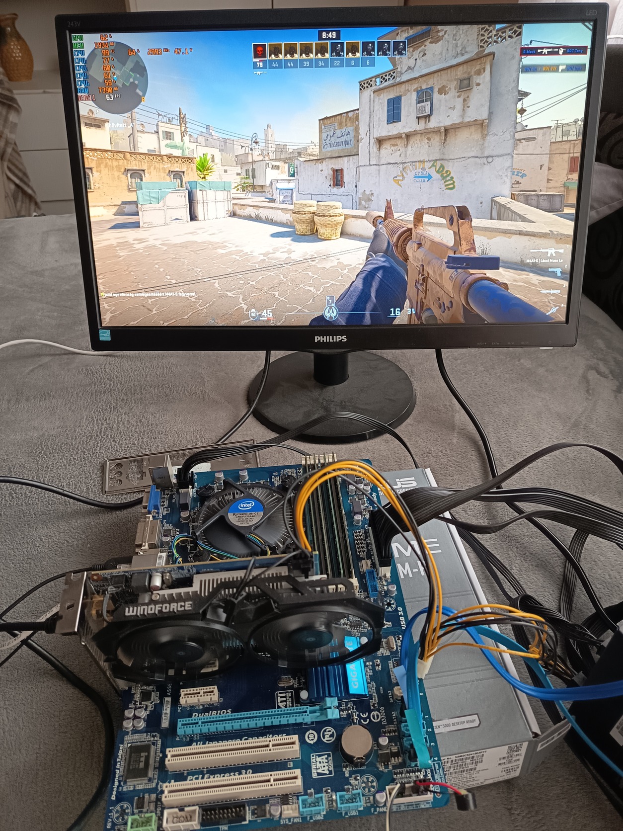 Alaplap gigabyte ga-b75-d3v, processzor I5 2400 3.10 GHz, memória 4x2gb hynix 1600mhz, gigabyte Gtx 750 ti videókártya 2gb! Windows 11 Pro használtam! Cs-2 1080p képen látható beállítások mellett 50-70 FPS hozták! Irodai gépnek,tanulásra ,film nézésre! Játékokra! Posta packeta!Posta az árban! Utalás Revolult elönyben! De nincs az sem gond! Adok hazai számlaszámot!