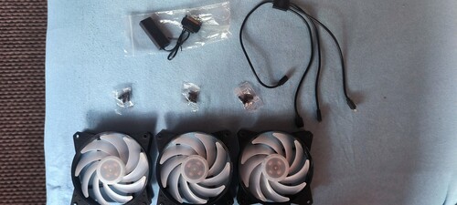 Eladó sorba került 3 db használt keveset futott jó állapotú 120x120 mm-es cooler master RGB ventilátor csavarokkal elosztóval vezérlővel amit a reset vagy erre fenntartott gombra is rá lehet kötni és onnan váltogatni.