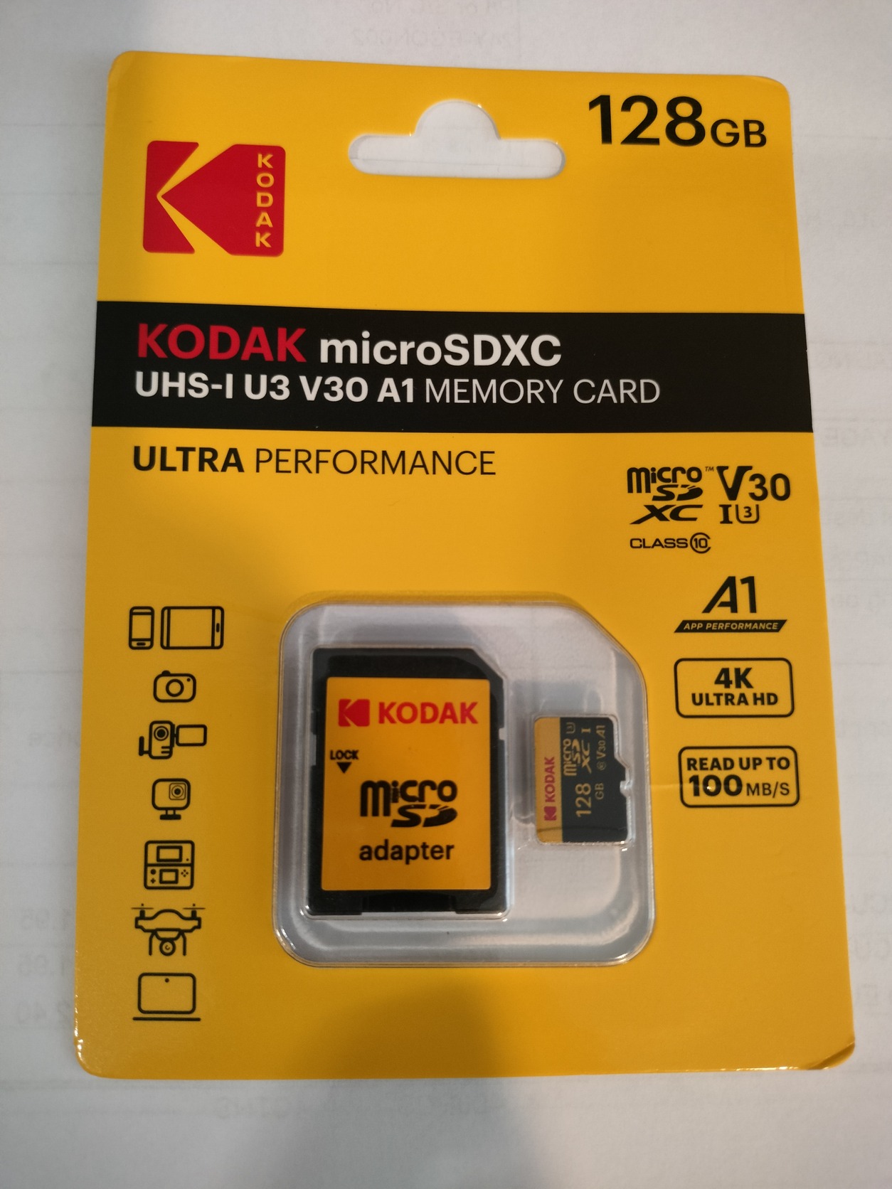 128GB KODAK memóriakártya MicroSDXC V30 U3 Class 10 új