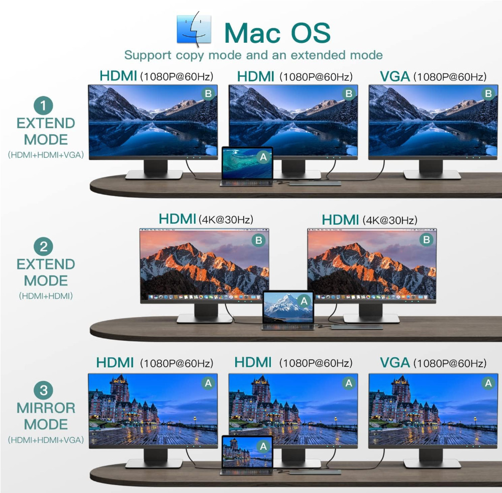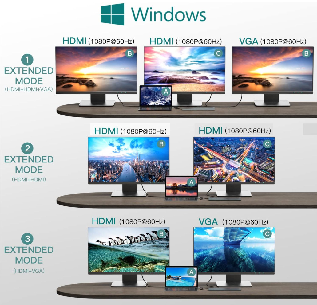 3 Monitor Type C to 4K Dual HDMI+VGA Adapter