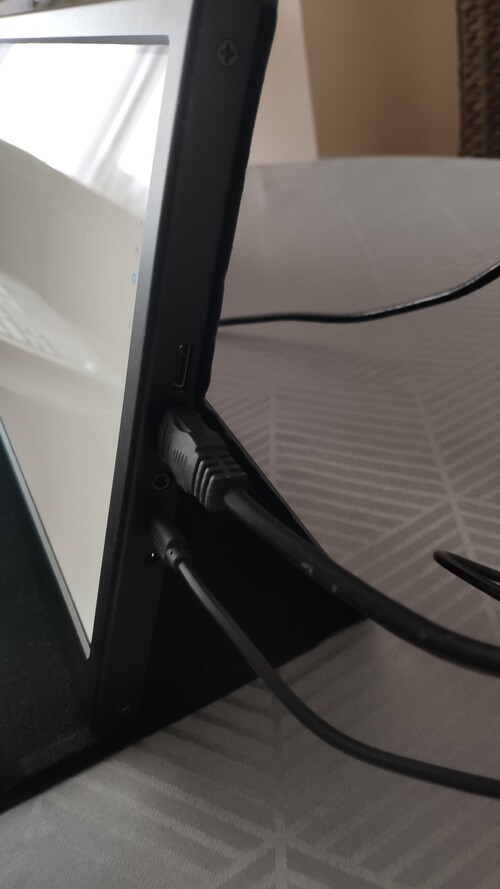 A monitorhoz tartozék a tok (állványként is szolgál), egy HDMI-minihdmi kábel illetve egy USB-A - micro-USB kábel a tápláláshoz.