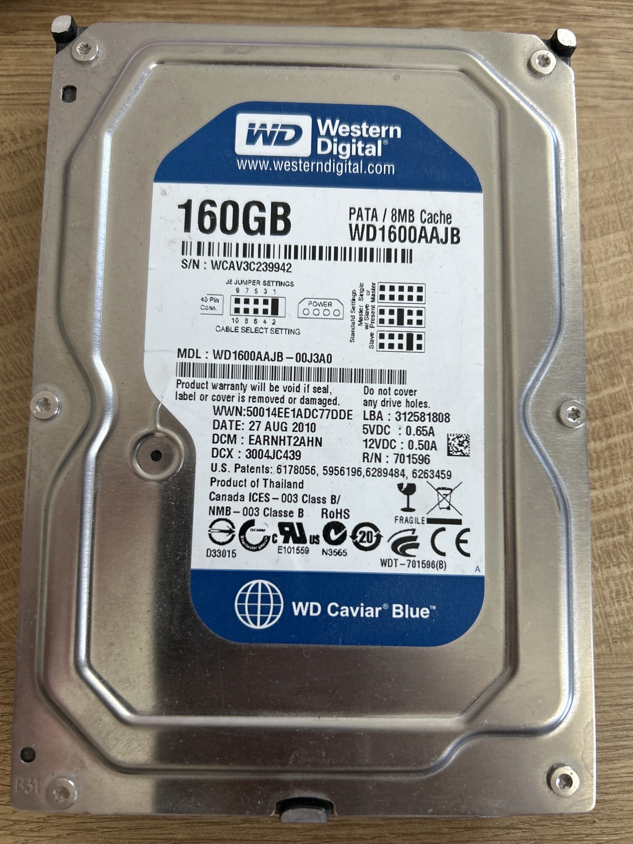 Jegelve – 160GB IDE WesternDigital HDD
