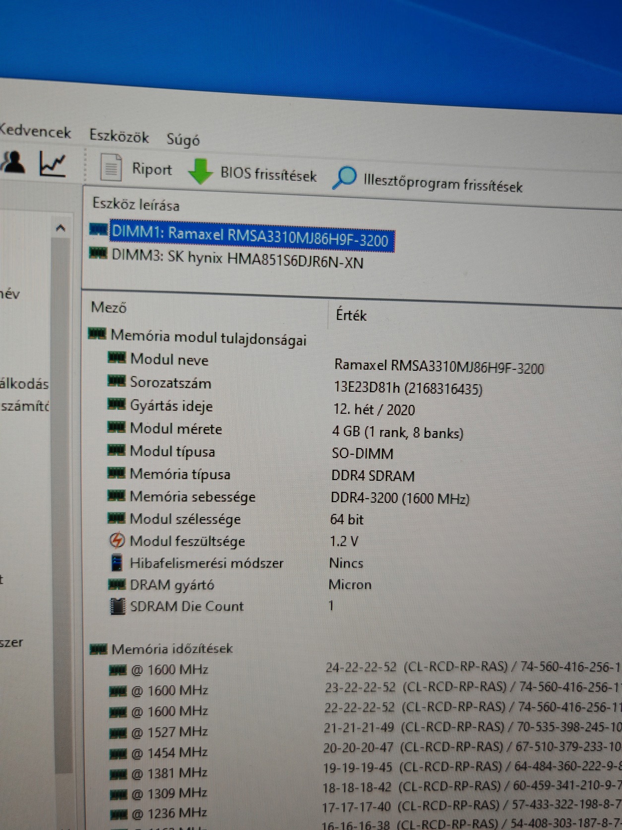 2x4 GB -> 8 GB DDR4 laptop memória, 3200 MHz.