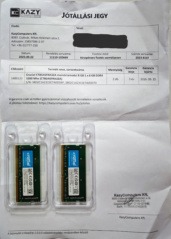 2db Új Crucial 8GB DDR4 3200MHz CT8G4SFRA32A Notebook Ram eladó!