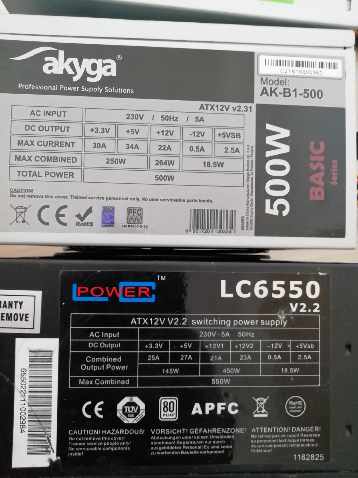 Akyga 8pin 500W 4000ftLCpower 8pin 650W 6000ftTechsolo 8pin 730W 7000ft