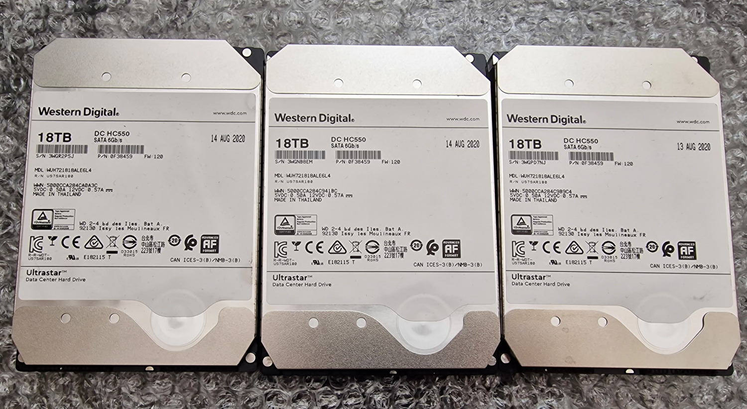 Eladó 3 1 darab 18TB Western Digital Ultrastar HC550 3.5" SATA HDD.