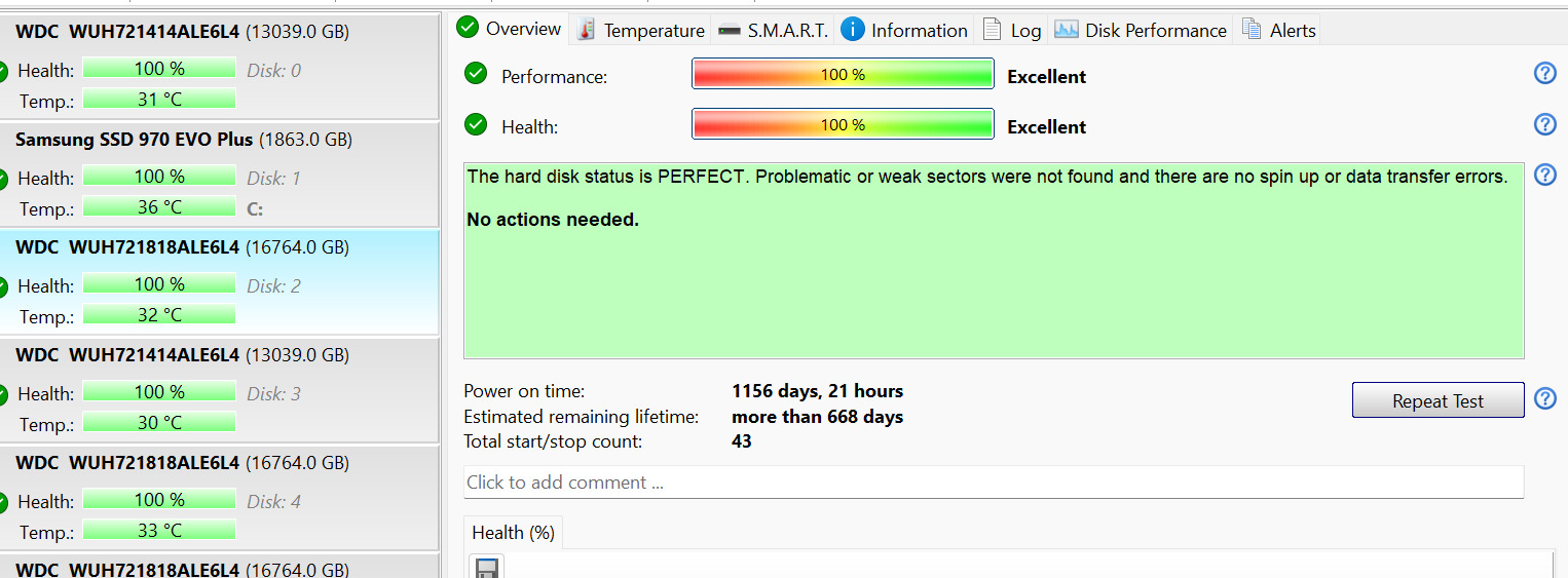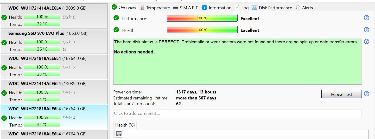 Friss HDSentinel tesztek eredményei: