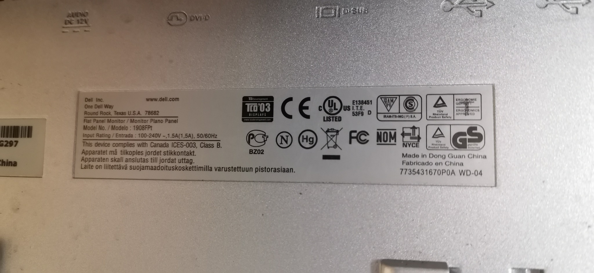 DELL 19" monitor 4:3 képarány 1280x1024