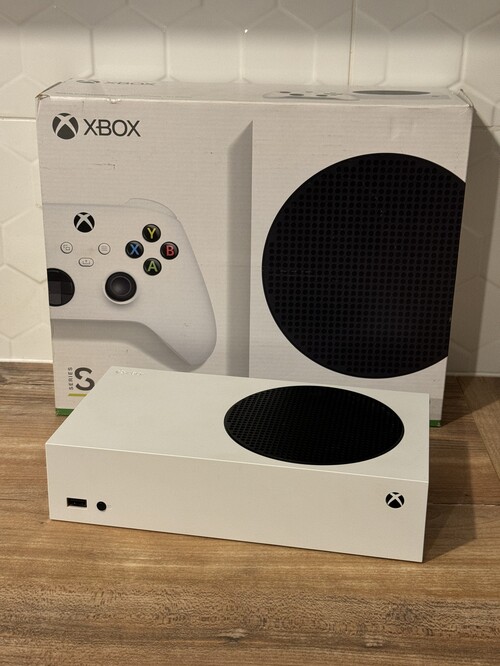 Eladó a képeken látható Xbox Series S, dobozában, kábeleivel, kontroller nélkül.