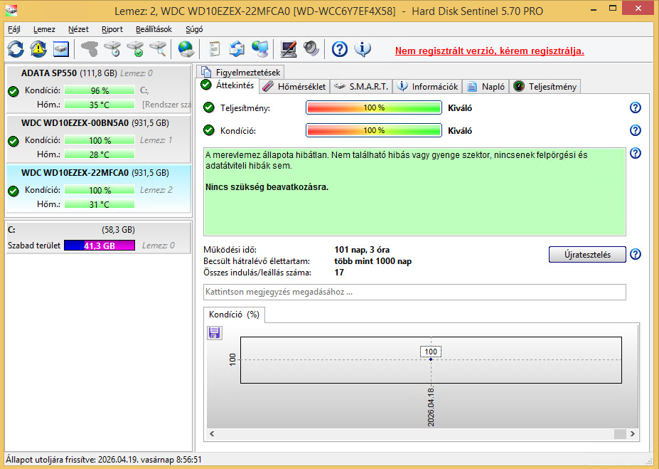 WD Blue WD10EZEX 100% 101 nap - 7000 FtWD Blue WD10EZEX 100% 370 nap - 7000 FtWD Blue WD10EZEX 100% 531 nap - 7000 FtHitachi HDT7210 100% 372 nap - 7000 Ft
