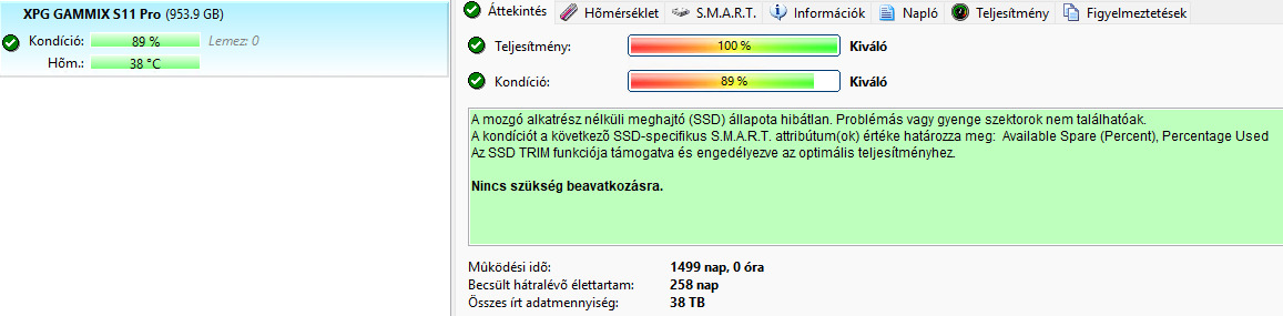 Adata XPG GAMMIX S11 Pro 1TB 89% 38TB 30eFt 1 hét
