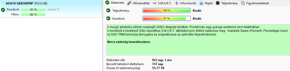 Adata SX8200PNP 1TB 91% 56TB 30eFt 1 hét