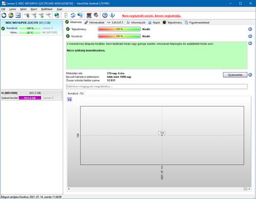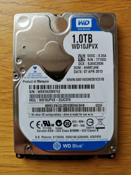 Kihasználatlanság miatt eladó a címben megnevezett WD10JPVX-22JC3T0 típusú, 1000GB-os SATA winchester.