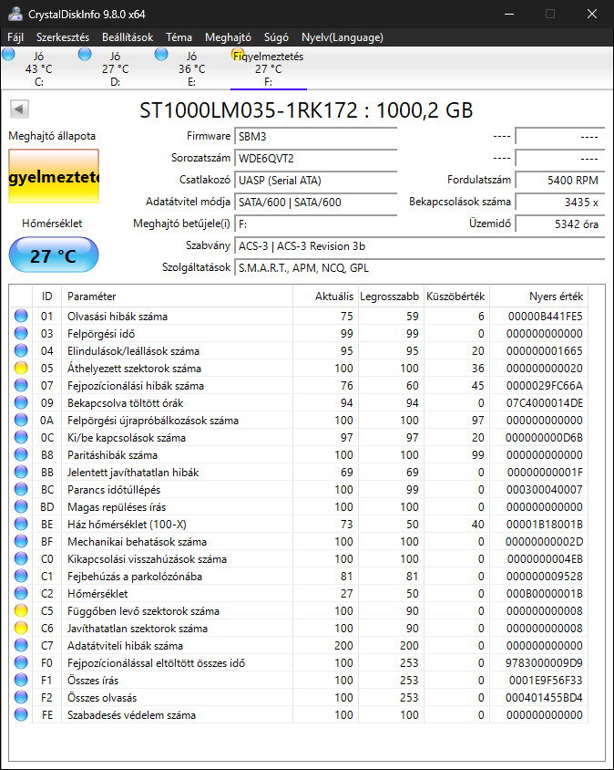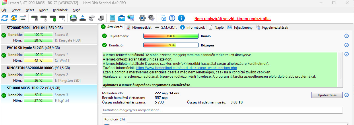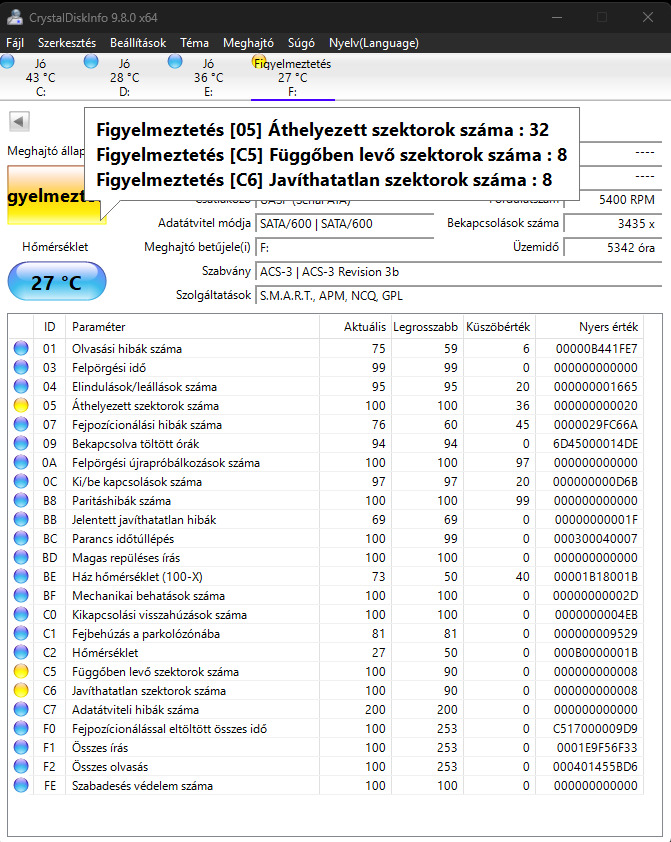 Képek alapján már nem a legjobb kondiciojú HDD, még gond nélkül használható.