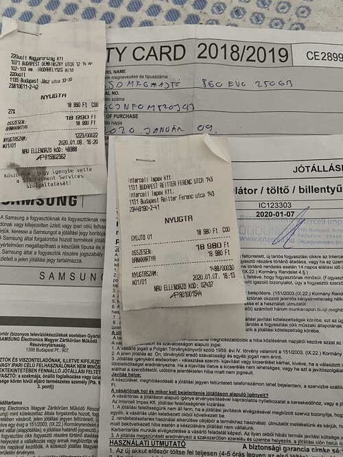 Garanciális Samsung 860 evo 250gb ssd.