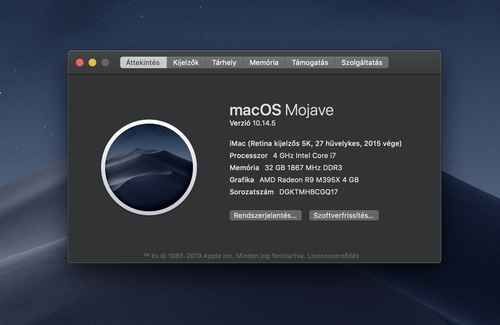2019 5K 27" iMac 4GHz i7 32GB 1TB SSD kitűnő állapotban eladó váltás miatt