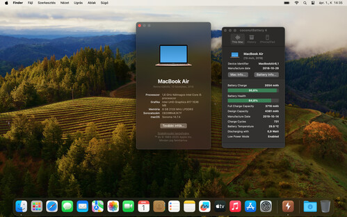 - Akkumulátora 85%-os !