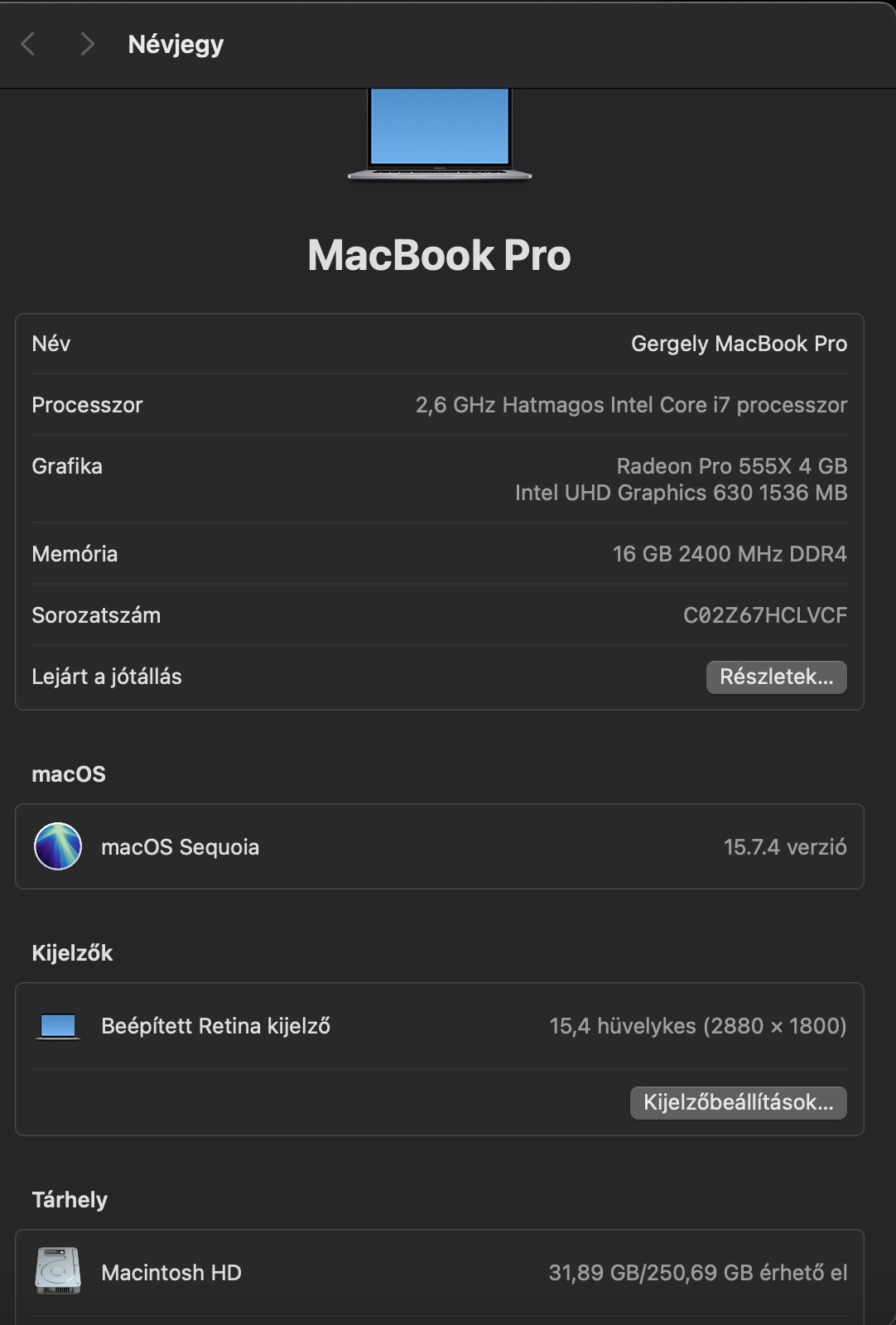 Eladó 2019-es 15"-os Apple MacBook PRO