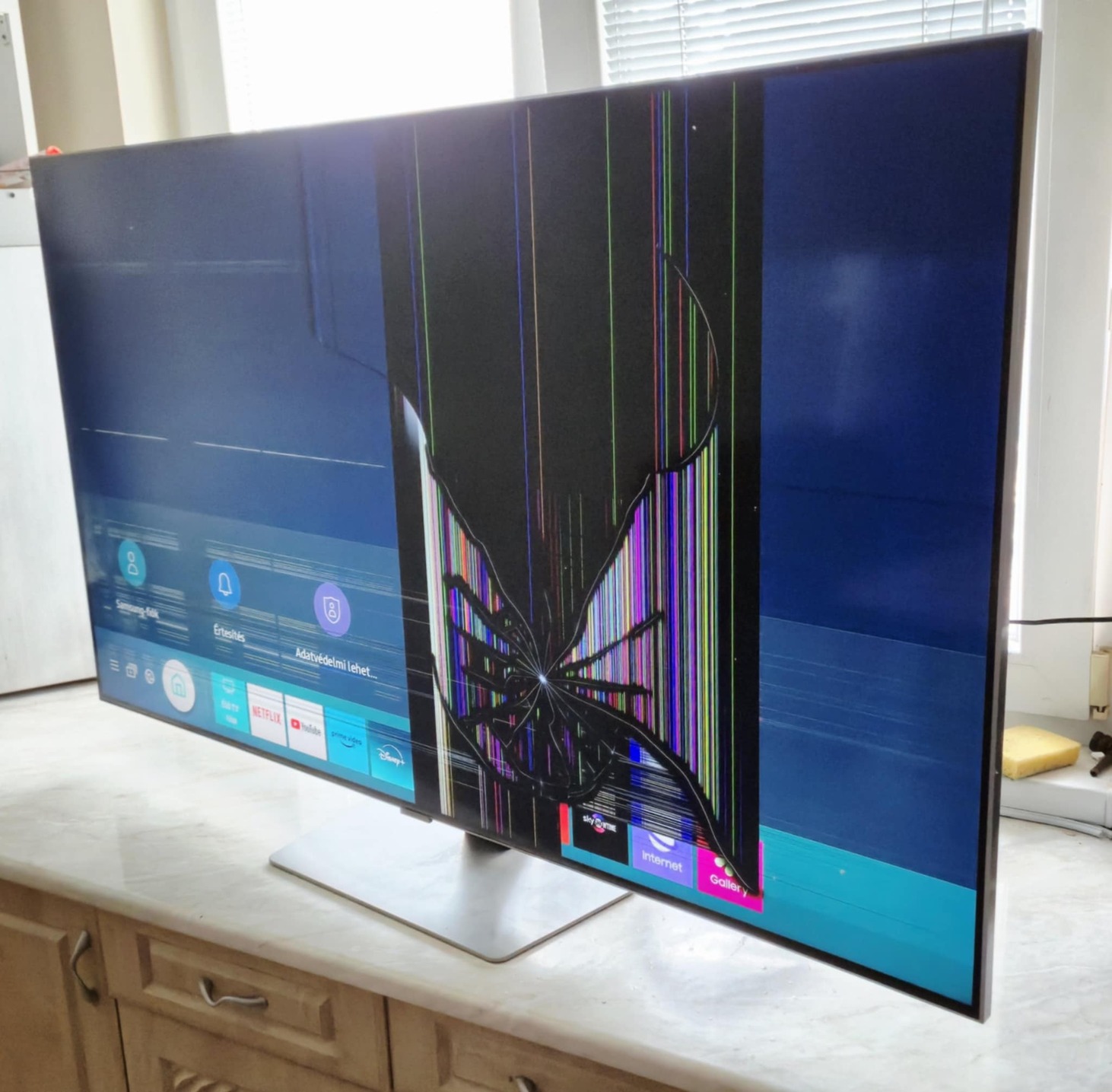A kerete még fóliás, a kijelző sérült