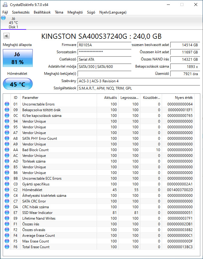 240GB-os Kingston A400 SSD eladó.