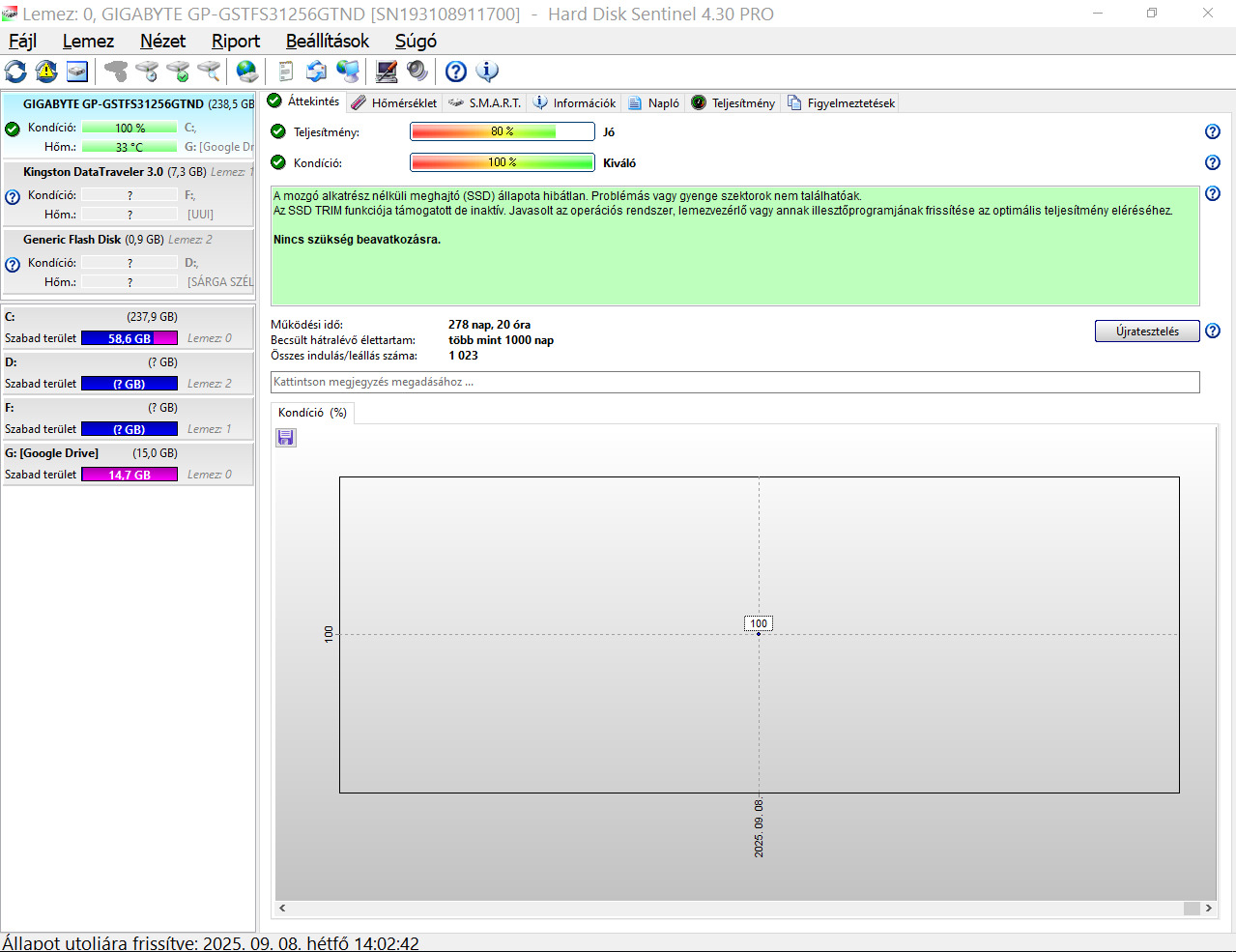 Gigabyte GP-Gstfs31256Gtnd 256b 100%