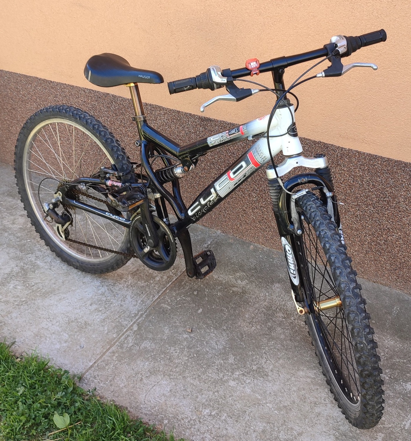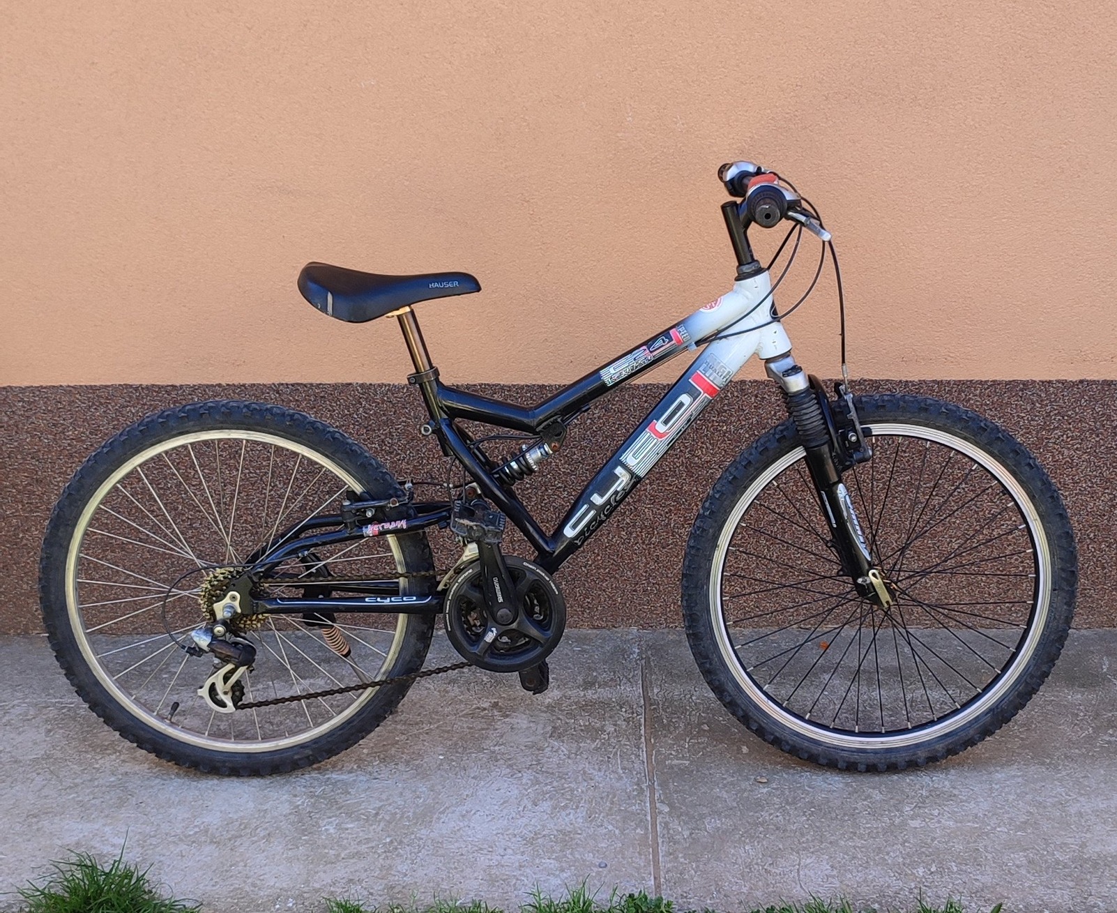 Eladó a képen látható azonnal használható 24" aluvázas dupla teleszkópos MTB. 18 sebességes.