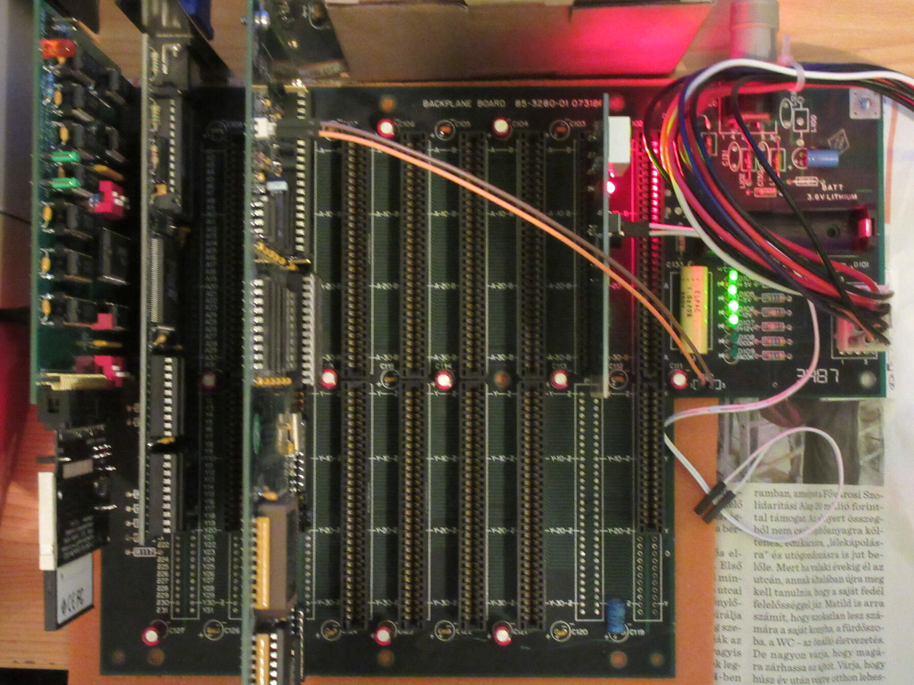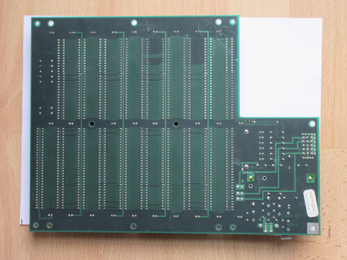 Backplane "alaplapon" van pár felületi karc, a hátulján több, de nem vészes, csak a festék kopott, réz vezetősáv nem sérült és nincs szabadon, az alkatrészoldalon csak egy hosszabb karc, az látszik is.