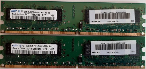 Egy hibátlan 2*2 GB-os Samsung DDR2-es, 800 MHz-es, CL6-os ram kit eladó. Pontos típus: M378T5663QZ3-CF7.