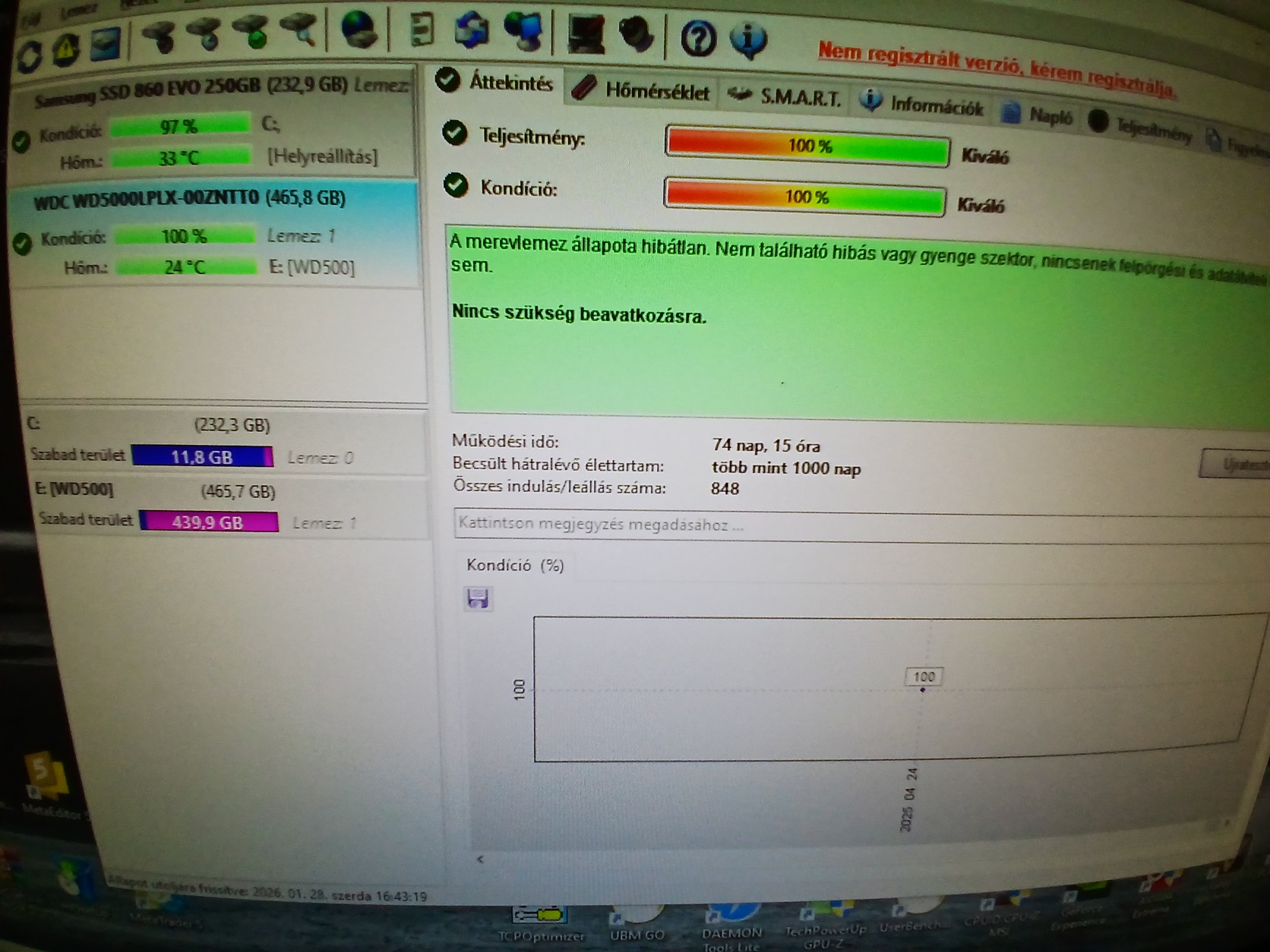 Szektorhiba mentes 100/100 a legkissebb kivetel (Samsung 160gb) az 62%os,