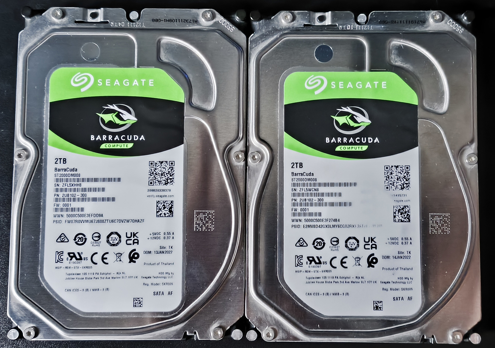 2 darab - Seagate BarraCuda 3.5 1TB 7200rpm 256MB SATA3 - eladó egyben 50.000 Ft-ért.