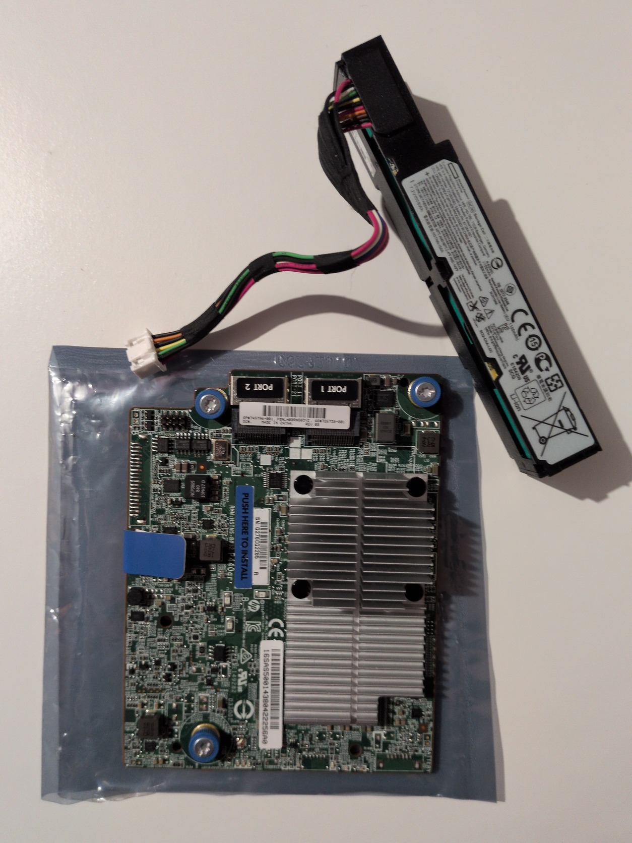 Eladó a képeken látható 2 db HPE Smart Array P440ar Controller + BBU szett.