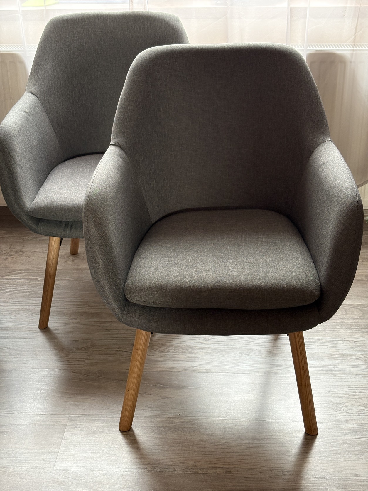 Újszerű, megkímélt állapotban vnnak, nincsenek kiülve. Az egyik fotelnek kicsi szépség hibája, hogy egyik lába rövidebb, így kicsit billeg, de bútorláb védő rögzítésével ez orvosolható.