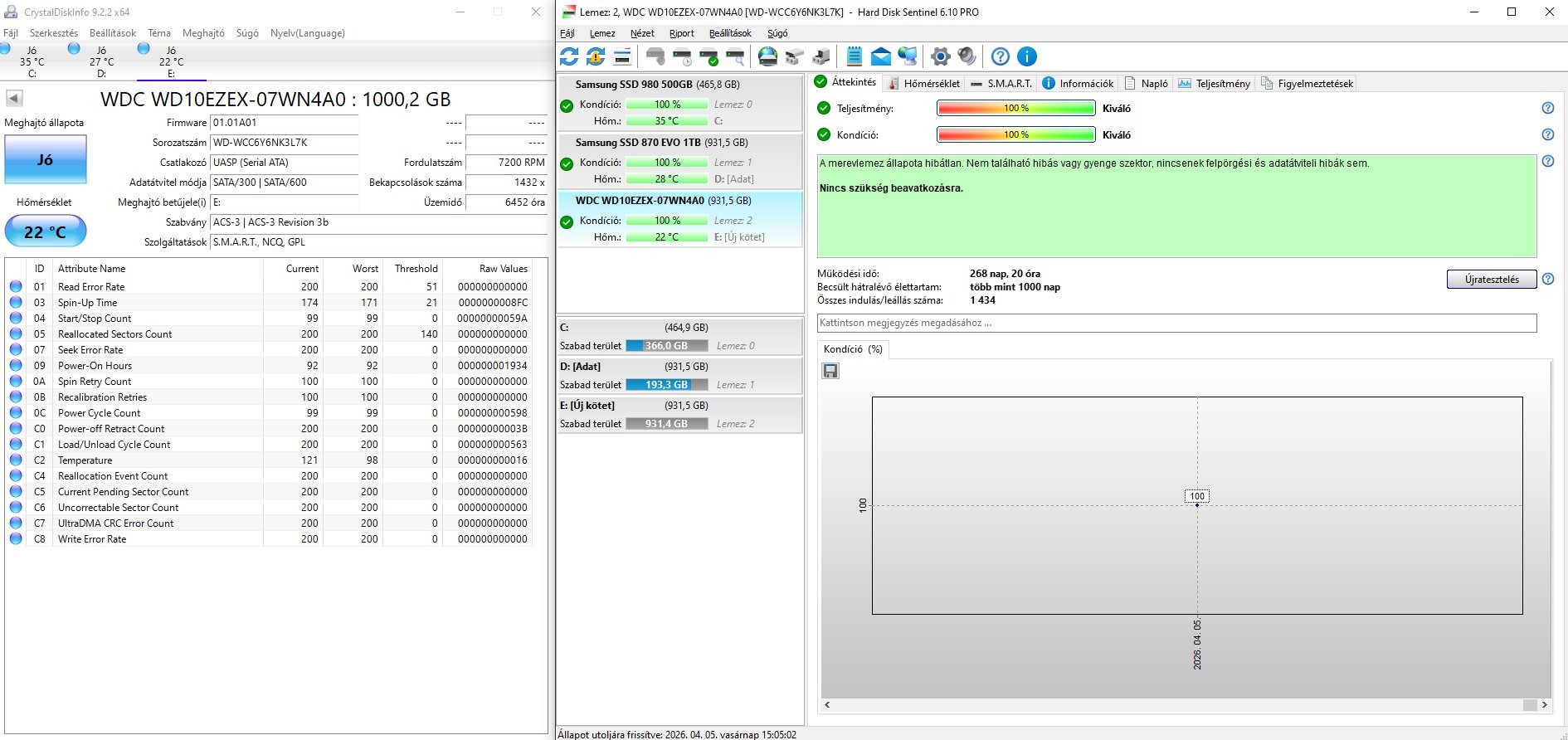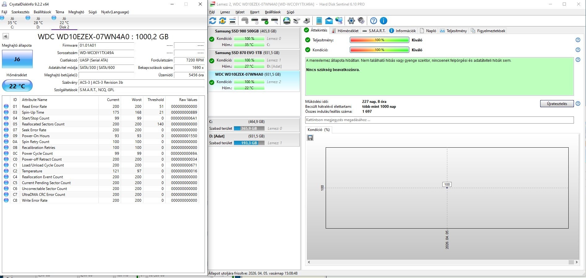 2 db Western Digital Blue 1TB HDD 100/100