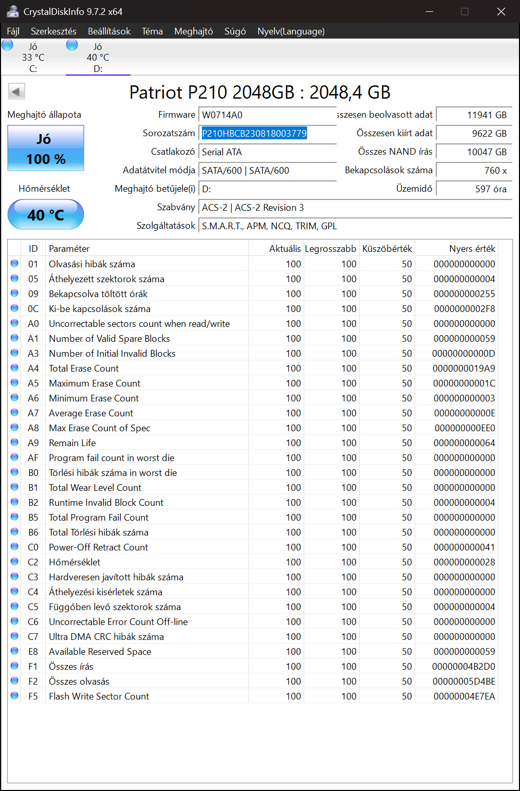 Eladó még 2 év garanciás Patriot P210 2TB SATA SSD. 2024.02.13.-án vettem az Alzában, innen indul a 3 év gari. Állapota a képen, még 10TB se volt írva vele, és 960TBW-t tud!!!