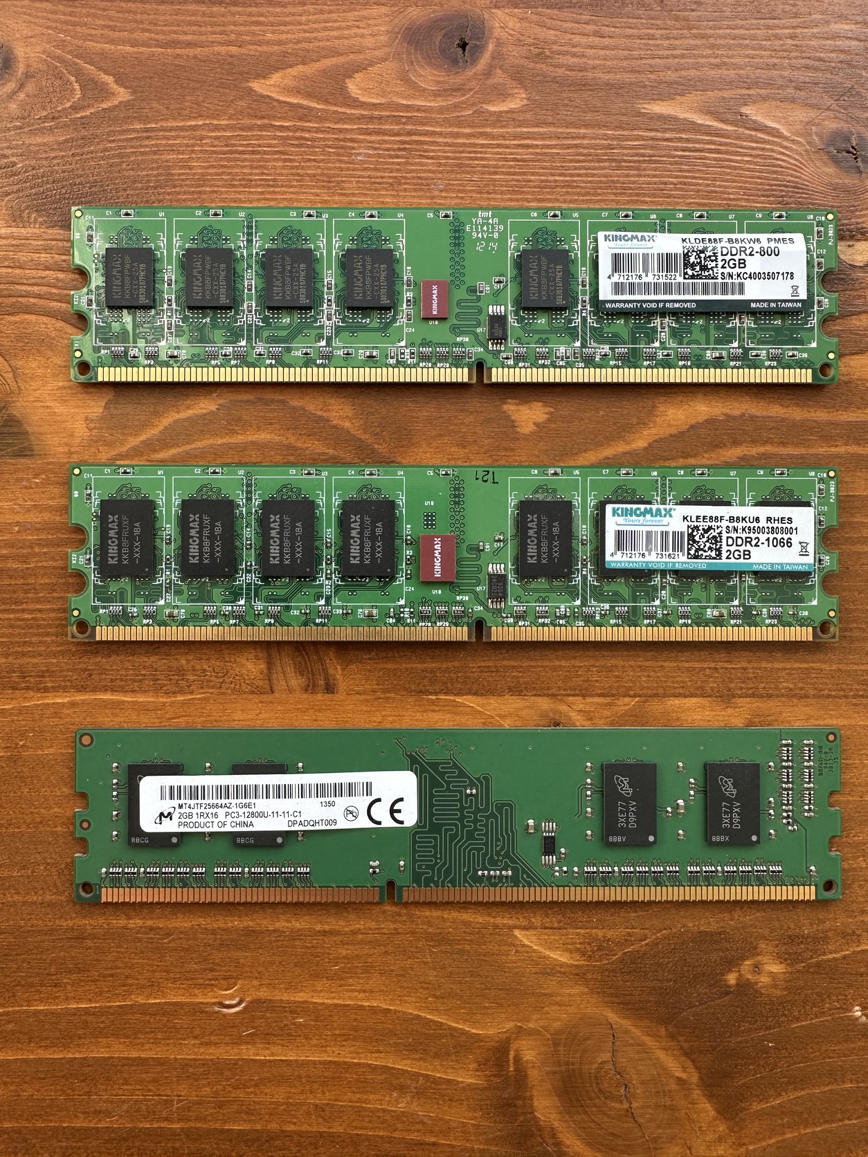 Tesztelt, hibátlan. 2db Kingmax 2GB DDR2, 1db Micron 2GB DDR3. Az ár darabonként értendő.