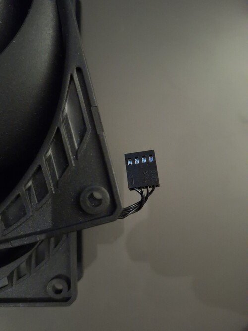 Egy AIO-ról szedtem le őket, egyből vásárlást követően, így konkrétan bekapcsolva sem voltak. Mivel AIO hűtésen voltak, ezért a KÁBELÜK NAGYON RÖVID (kb. 3cm - képen).