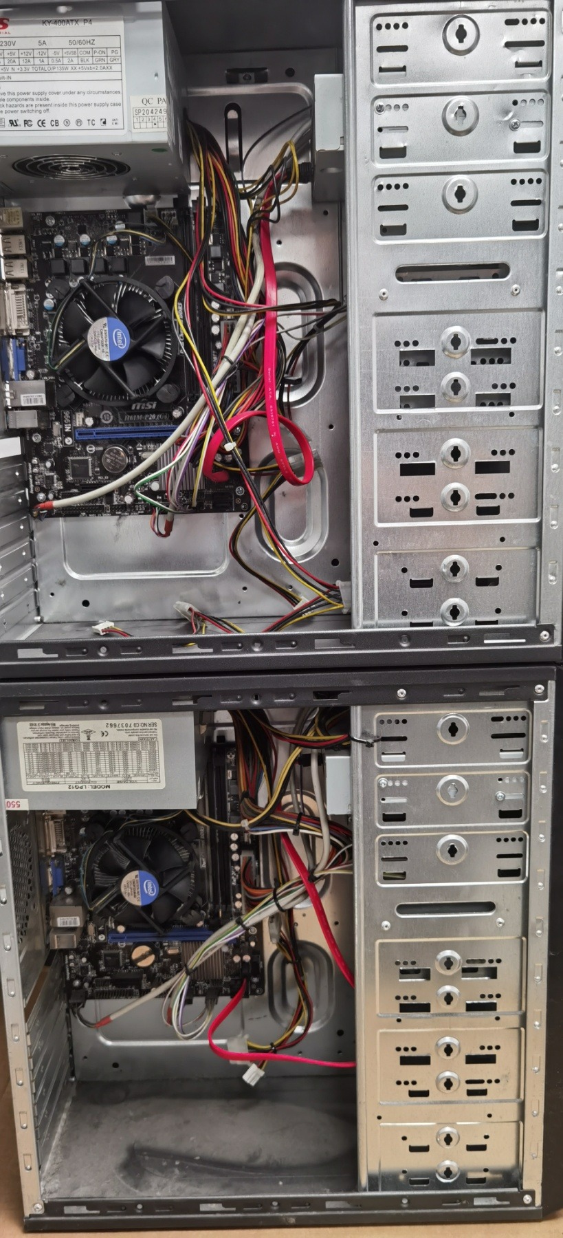 Eladó a képen látható két darab szinte teljesen egyforma asztali PC. Ram és merevlemez hiányzik az üzemeléséhez. A kettő együtt 10000ft, külön is eladó, úgy darabja 6000ft