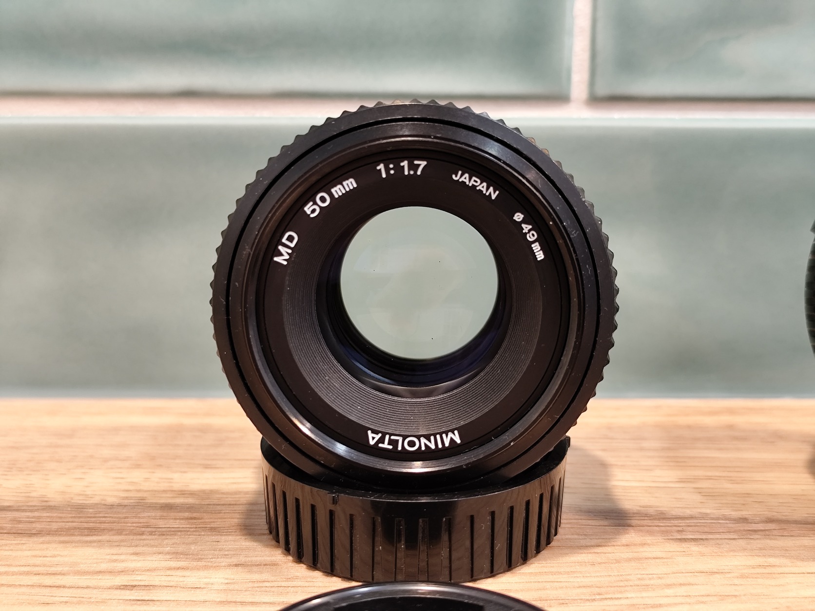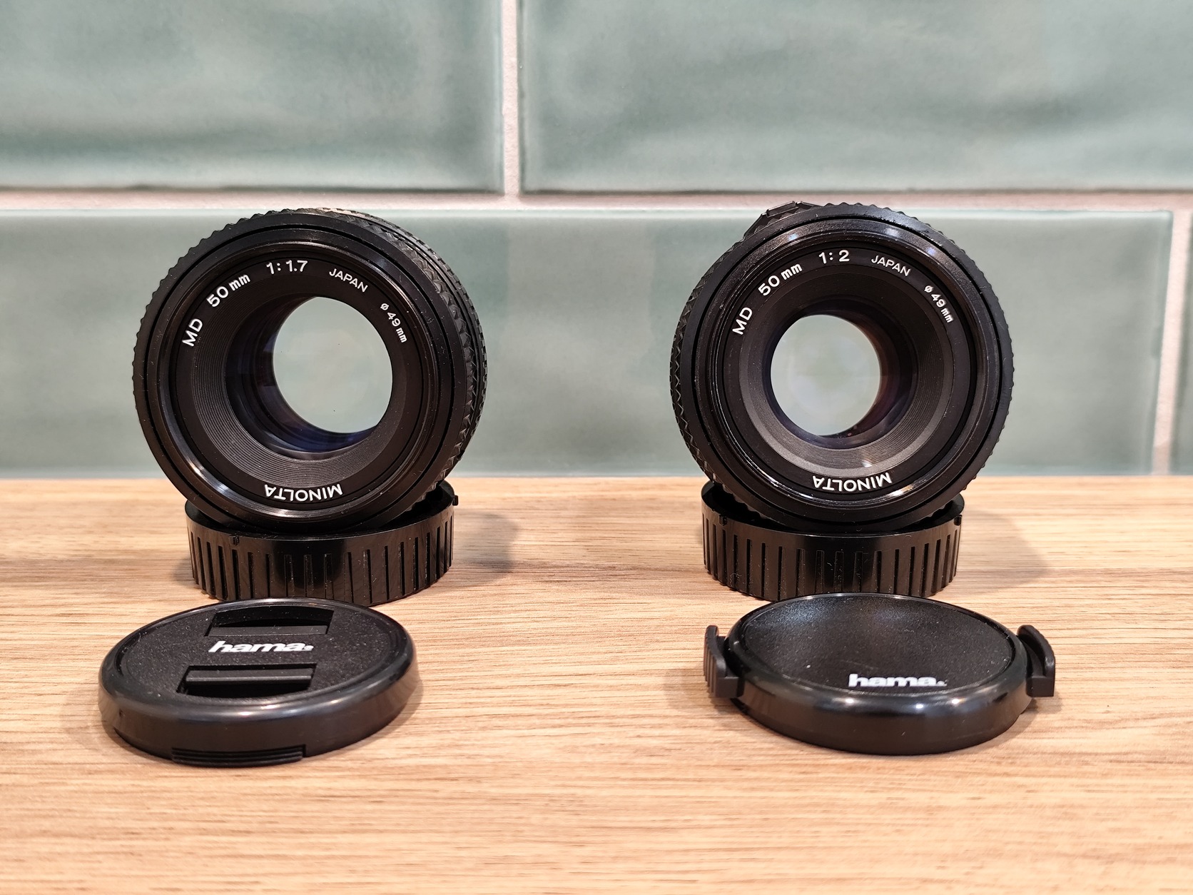 1. Minolta MD 50mm f/1.7 - serial: 6138296 - első Hama és hátsó gyári Minolta sapkákkal