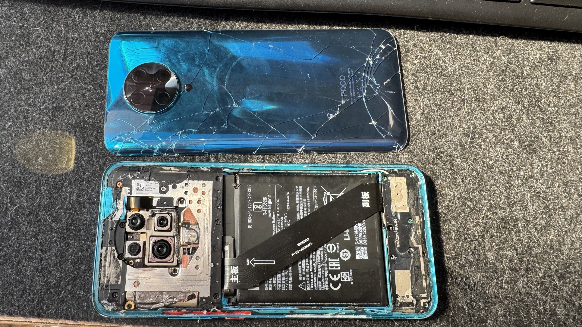 Lila: kivülről szép állapot, oldalán láthato pár kopás, ezt leszámítva karcmentes(sim tálca törött). akkumulátor jó, alaplap is jónak tűnik, viszont nem veszi a töltést(jelenleg 60% körüli az akksi töltöttsége), vissza van alaphelyzetbe állítva(android 14 van rajta, nem a gyári szoftver), a kamerák ki lettek rajta cserélve a Redmi K30 Pro Zoom kameráira, töltést leszámítva minden jónak tűnik