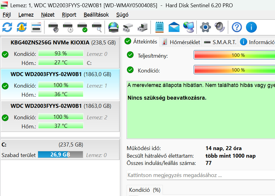 HDSentinellel ellenőrizve !