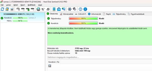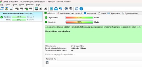 A 100 nap hátralévő idő ne tévesszen meg, nem az állapota miatt, hanem szerintem az üzemidőből kalkulálta csak ezt a HD sentinel!