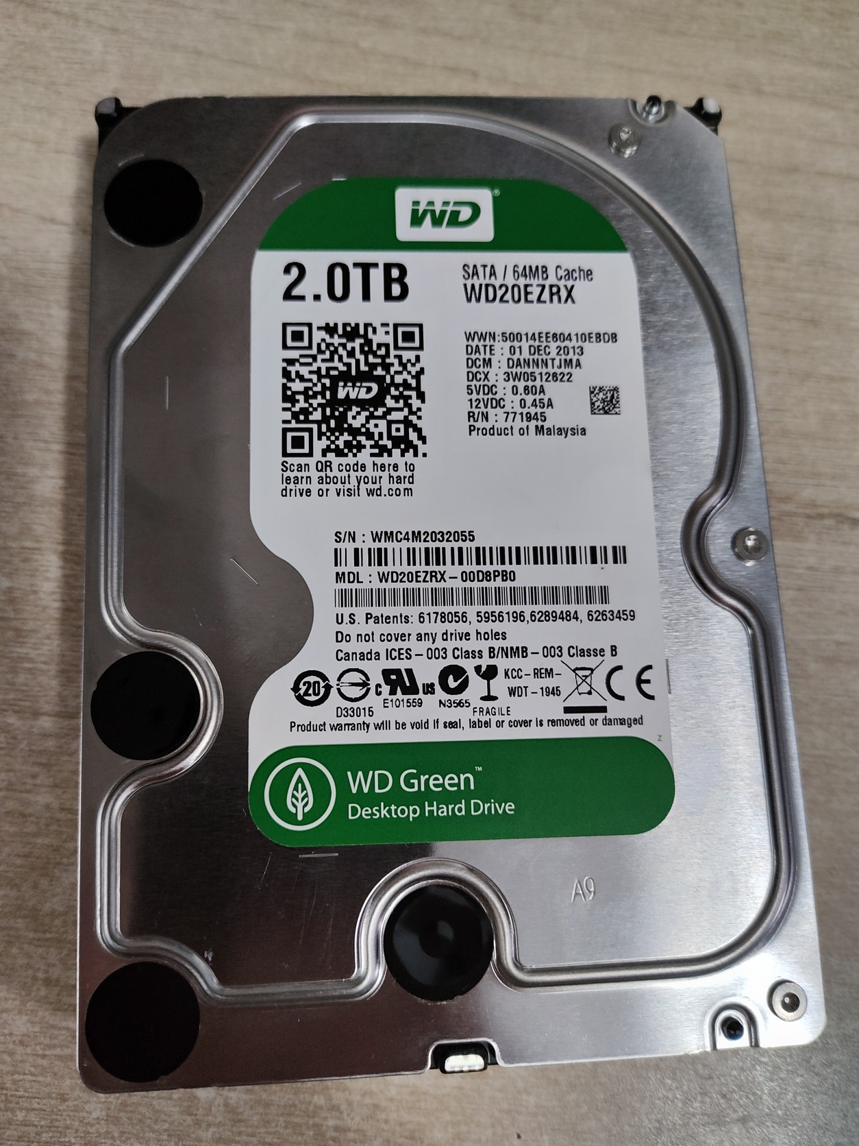 2TB WD GREEN 3,5" HDD (WD20EZRX)