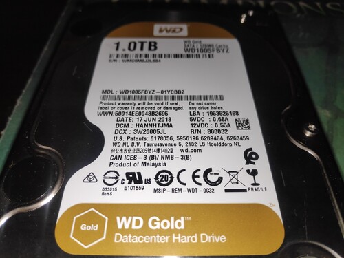 Eladó kèt darab WD Gold Datacenter HDD. 1TB 128MB Buffer Size WD1005FBYZ