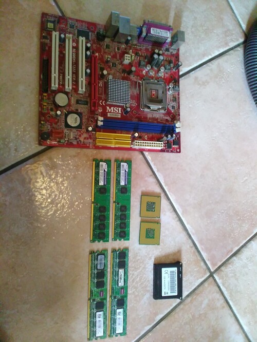 Egy MSI alaplap melyet teszteltem de nem pörög fel, 2 db intel celeron proci és egy hütő jár mellé ingyen!