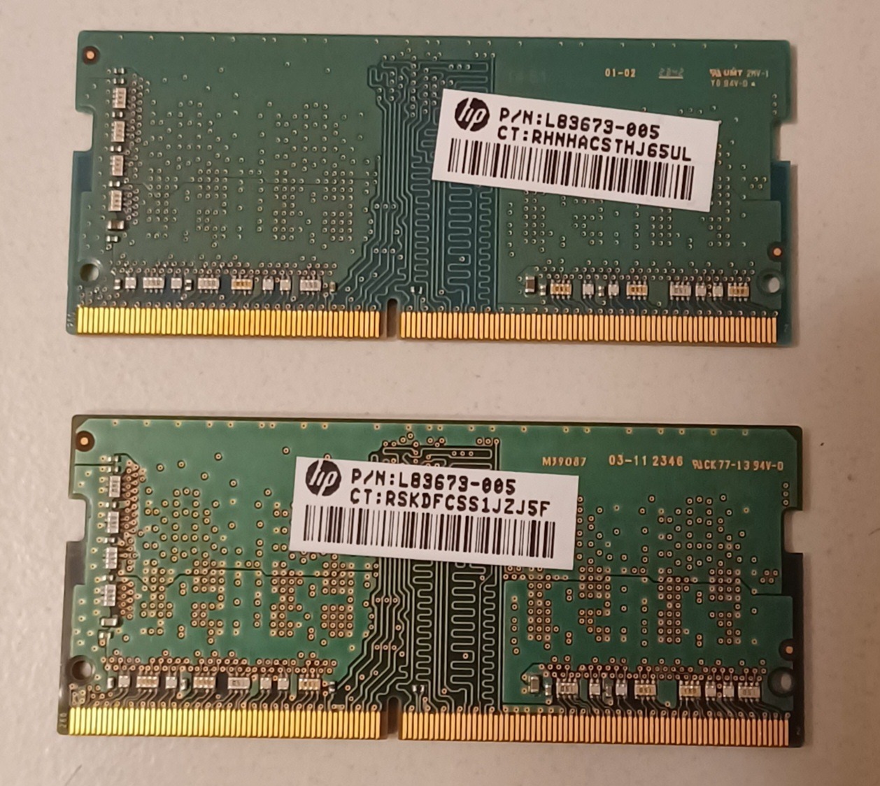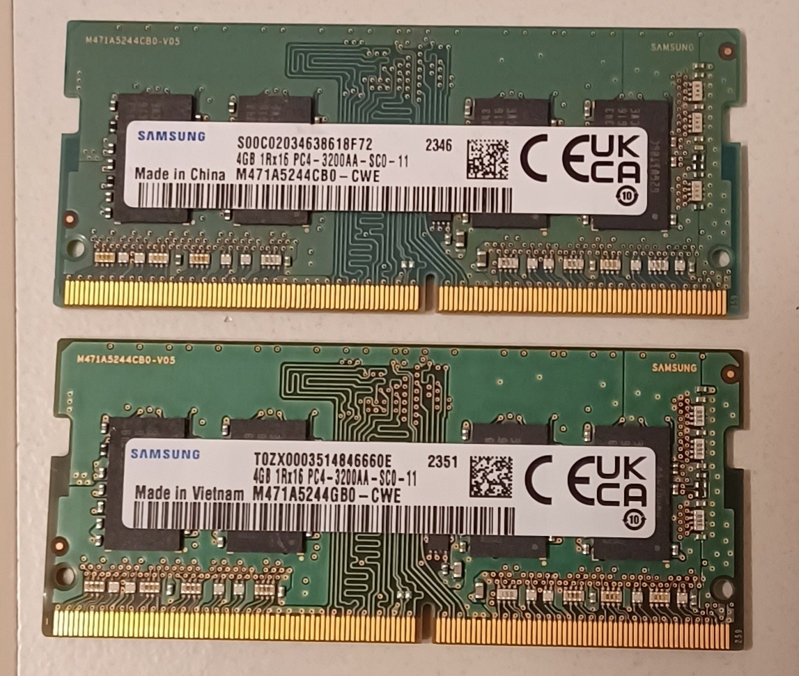 Eladó a címben szereplő két modul. Nem teljesen egyformák. Láthatóan HP gépből származnak, hozzám egy Lenovóban érkeztek. Lenovo diag teljes teszt nem mutatott hibát.