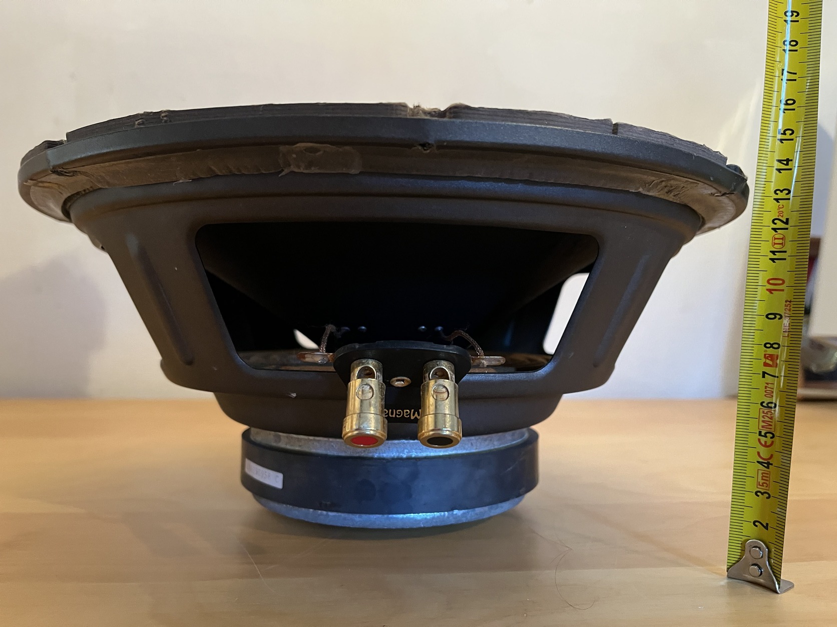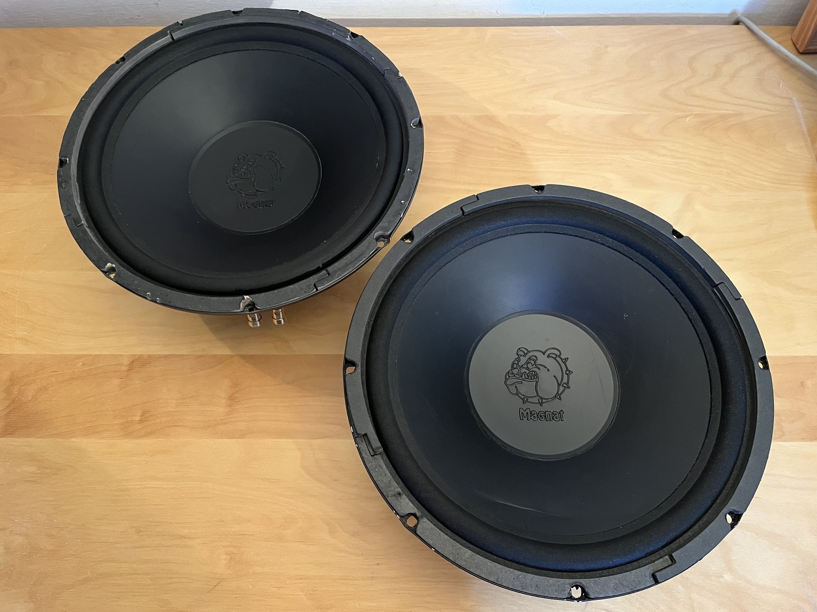2db 30cm, 12" magnat mélynyomó, 4ohm, pontos típusa és teljesítménye nem ismert, 1000 wattos végfokkal torzítás nélkül szépen szól!