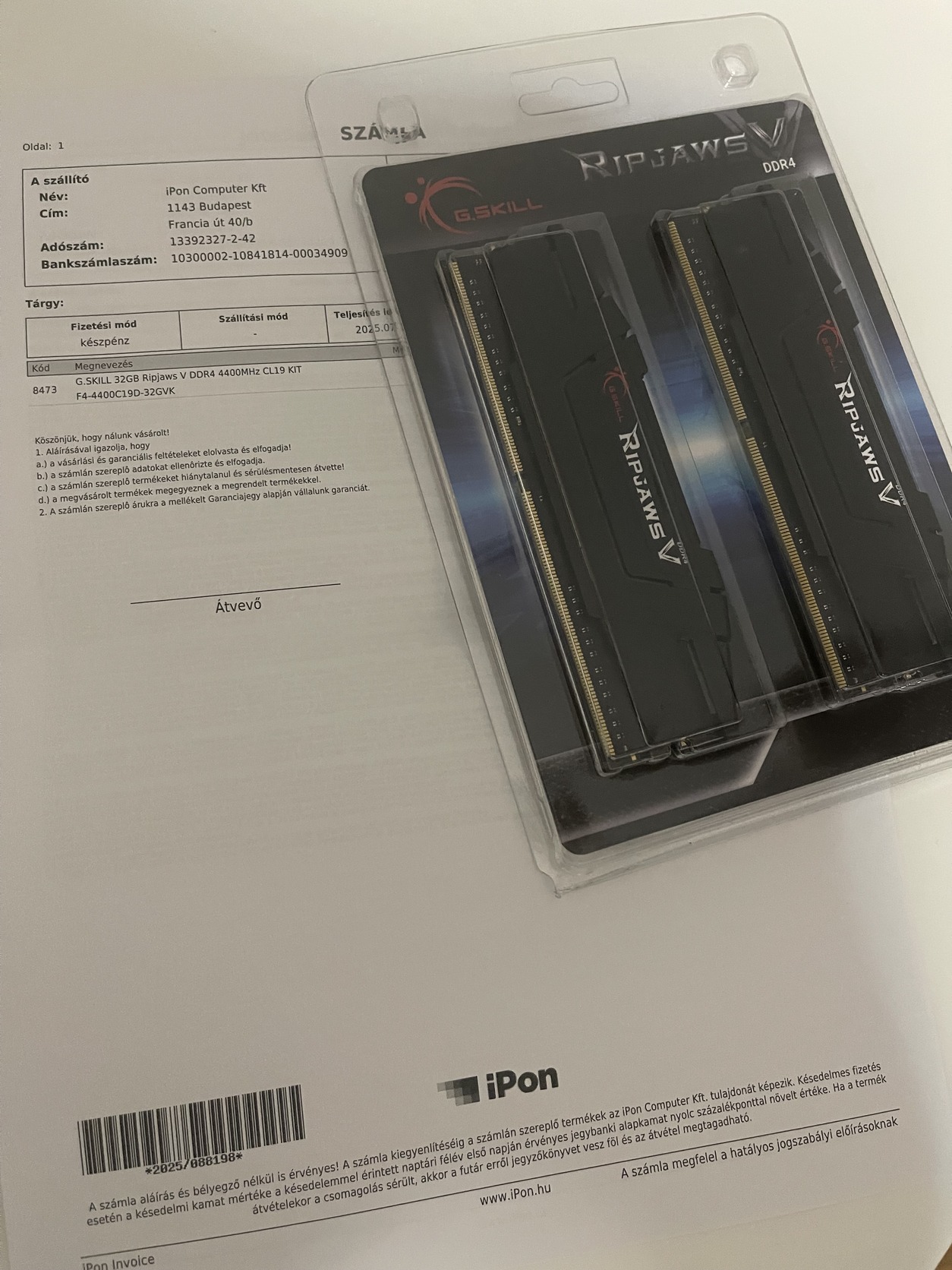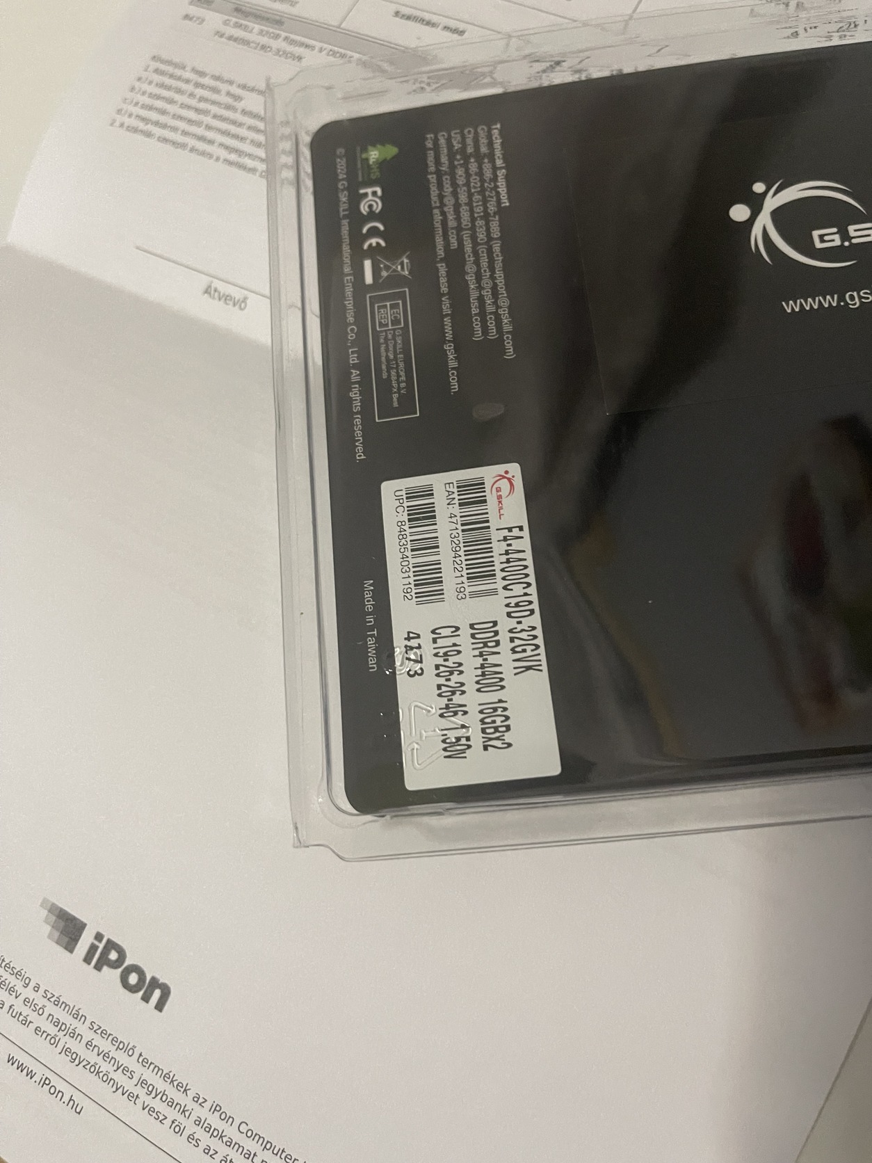 32GB G.Skill Ripjaws V 4400Mhz CL19 Kit (Közel 3 év iPon garancia)